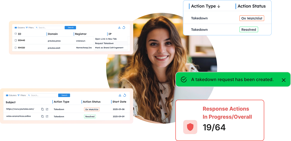 Detect and take down lookalike domains, phishing websites, and impersonations in minutes. Get a live demo now.