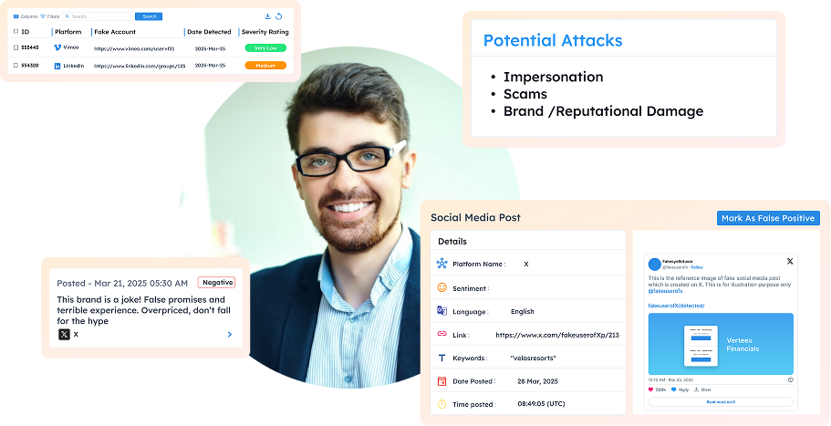 Act as soon as threats appear with 24/7 monitoring and built-in takedowns. Cut recovery costs, shortens incidents, and reduces customer frustration.